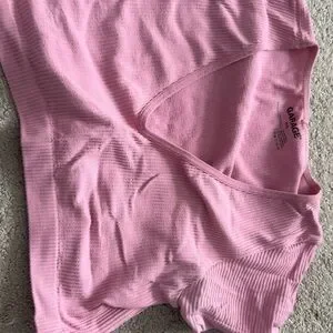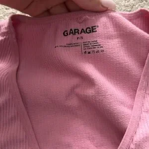 Chic blush ribbed V-neck tee by Garage. Ideal for everyday style.