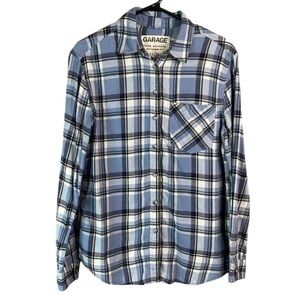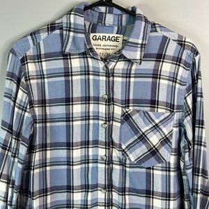 Garage Boyfriend Fit Plaid Brushed Cotton Shirt Blues Long Sleeve Button Up XS