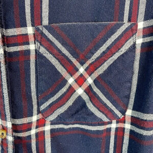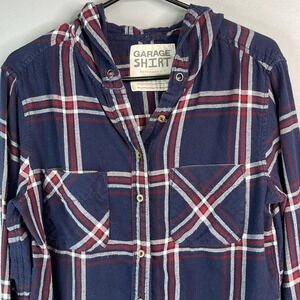Garage Boyfriend Fit Plaid Hooded Flannel Shirt Navy Blue Burgundy White Size M