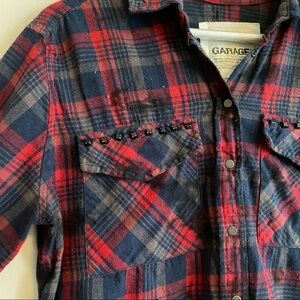 Garage Boyfriend Fit Plaid Studded Button Up Shirt