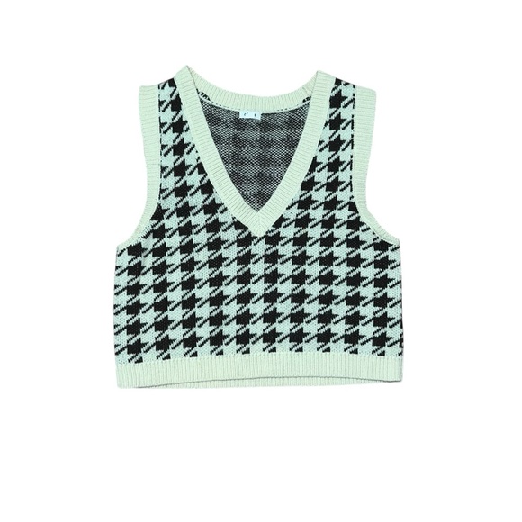 Garage Brown And Cream Houndstooth Knit Vest Top Women’s Size XS Preppy Layer