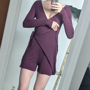 Super cute burgundy romper from garage, wraps at the front to look like a dress but has shorts in the back. Faux wrap. Size small.