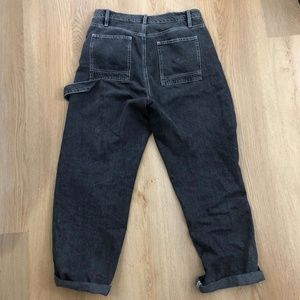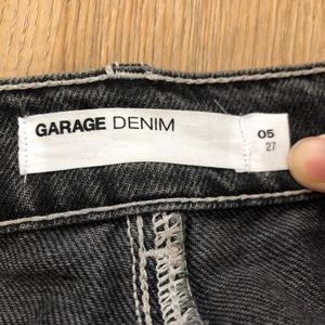 Carpenter-style jeans from Garage. Grey with contrasting white stitching. I recently purchased these, I think I’ve had them for under 4 months, however the waist is a bit too big on me now. Still available in stores, really flattering, and a fun shape and design. Super comfortable!
