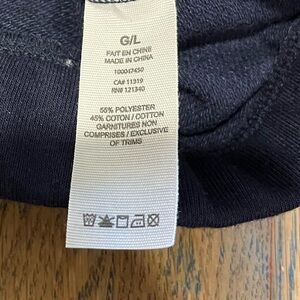 Chandail court et tendance de la marque Garage avec design colorblock : haut blanc, corps bleu marine et manches rouges. Fermeture demi-glissière avec anneau décoratif et col montant côtelé. Tissu doux en mélange de coton et polyester. Taille : G/L (Large).
