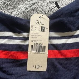 Garage Crop Scoop Cami Blue with red and white stripes 95% Rayon 5% Spandex