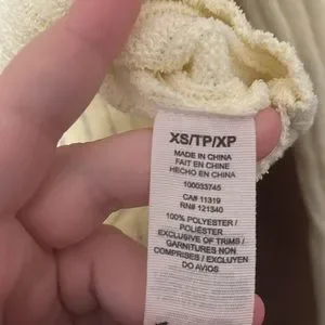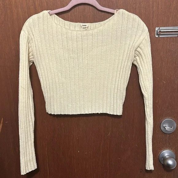 In great condition sweater from Garage. Cropped. Wide ribs. See through when stretched. Last picture shows colour the best, a pale but noticeable yellow.