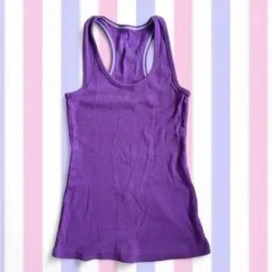 Slim-fit racerback tank in a rich purple hue. Soft, stretchy knit for comfortable wear. Easy to layer or wear alone. fits size small