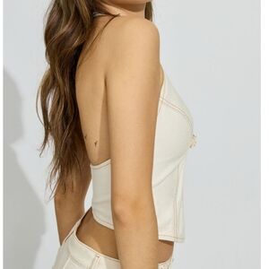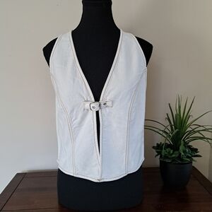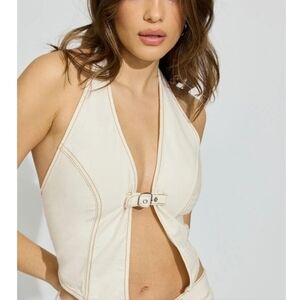 Garage Denim Halter Top Size Large Beige Buckle Front Denim Shirt NWT