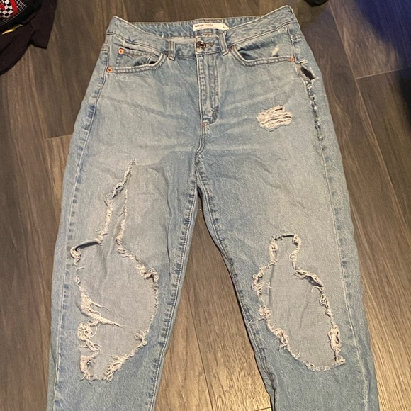 Garage distressed high rise jeans, worn quite a few times, no stains, small hole in the side, in good condition other than the hole.