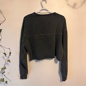 Garage Embroidered Los Angeles California Charcoal Cropped Crew Neck Sweater