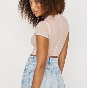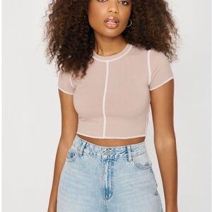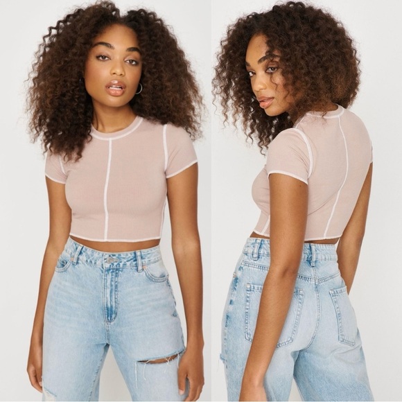 softer-than-soft fitted baby tee with exposed seams in a cropped length.