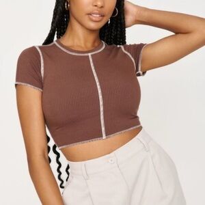 Garage Exposed Seams Stormi CropTee Toffee Beige Brown size S