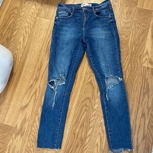 Garage Girls Retro High Waist Distressed Blue Jeans (Size 5)