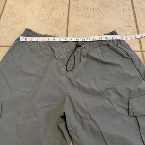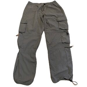 Garage, parachute pants, cargo pants, nylon pants, gray pants, baggy pants, streetwear, Y2K, athleisure, utility pants, size XL, drawstring, trendy