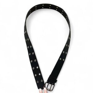 •black faux leather GARAGE grunge goth punk alternative skater essential silver grommet belt 🖤🛹⛓️