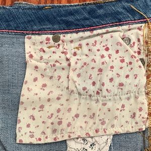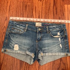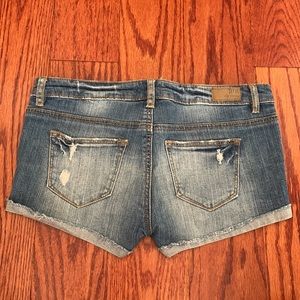 Light Jean shorts with real pockets in the front and back. In great condition for summer. Machine wash and dry.