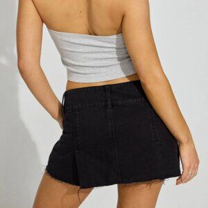 •distressed GARAGE JUPE MICRO SKORT black low rise Y2K inspired pleated grunge mall goth emocore frayed raw hem side button denim mini