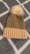 Stylish knit beanie with a fluffy pom pom. Features a blend of tan and cream/off-pink colours.