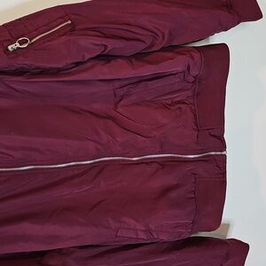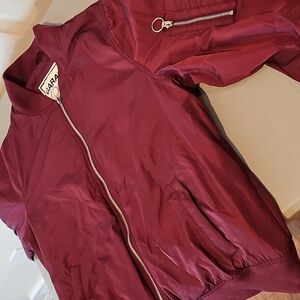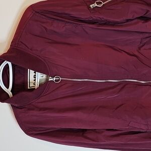 Stylish bomber jacket with zip closure. Features side pocket with zipper. Perfect for casual wear.