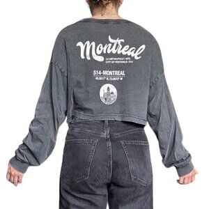 Garage Montreal Dark Grey Cuffed Long-Sleeve Cropped Shirt Women Size M