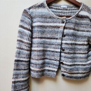 Cozy striped sweater. Perfect for layering. Stylish and comfortable.