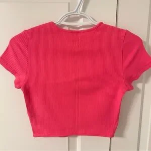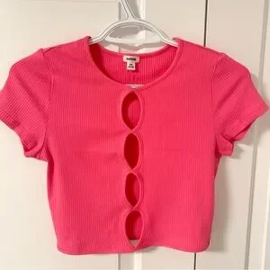 Ribbed pink crop top with stylish bubble cut-out detail. Women’s size small from Garage. Brand new without tags - never worn.