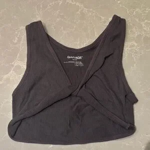 Chic ribbed crop top with a unique twist design. Perfect for everyday style. Soft fabric for comfort.