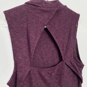 A cute ribbed dress featuring a keyhole cut-out on the back. Features a mockneck collar. In great condition.