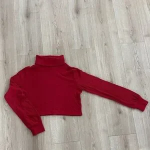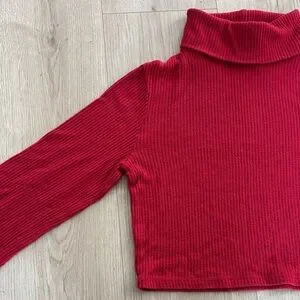 Garage Red Ribbed Cropped Turtleneck