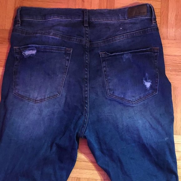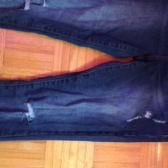 Distressed High wasted Jeggings, in excellent condition, Size 9, Dark blue color.