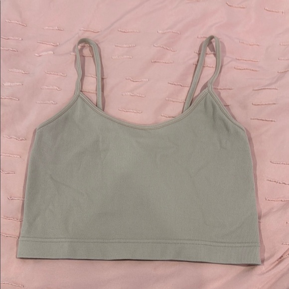 Chic ribbed crop top by Garage. Soft beige tone. Ideal for everyday style.