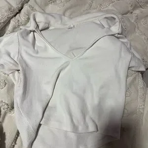 Garage Ribbed Collared White Top
