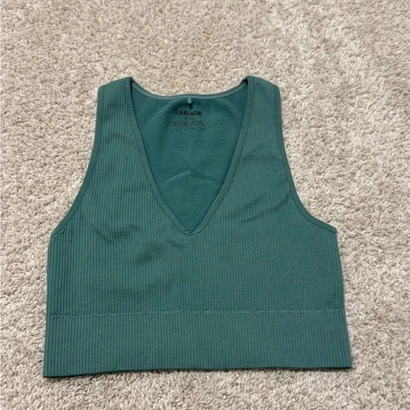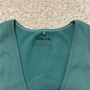 Chic and comfortable ribbed crop top. Features a stylish V-neck design. Ideal for casual wear.