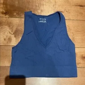 Garage Ribbed V-Neck Crop Tank - Blue