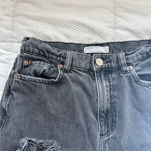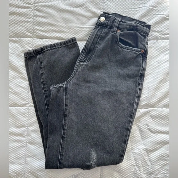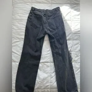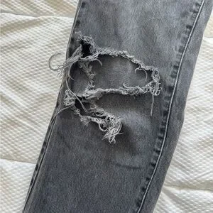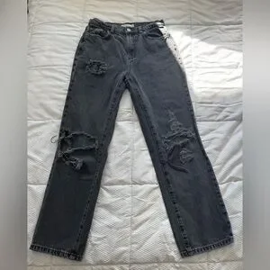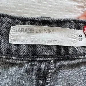 Washed black ripped Garage jeans. The style is vintage straight. There is no stretch to them.