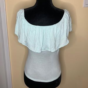 Item can be worn over the shoulder or off the shoulder. Worn once.