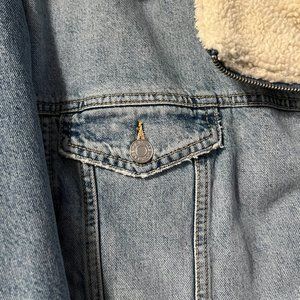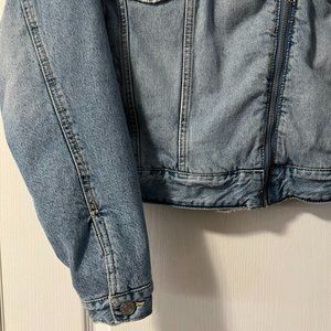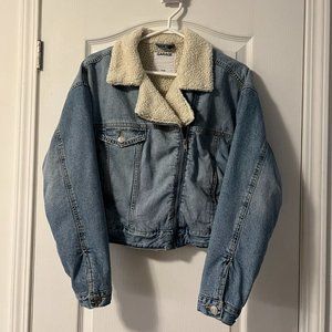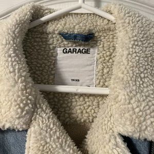 Garage Sherpa Fur Denim Aviator Crop Jacket