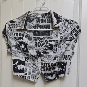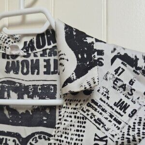 Garage Short Black and White Newspaper print Button Down Shirt Extra Small