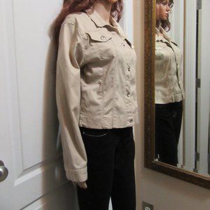 Lighter Tan/ Beige in color. The price is set low because of defects but I wont go lower price to sell