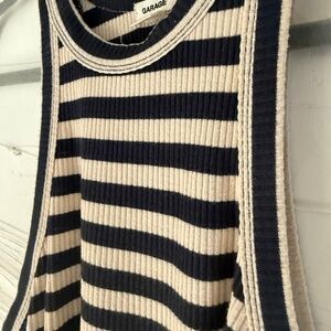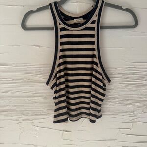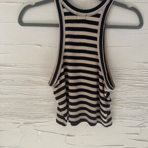 ▫️ Details: Black + beige horizontal stripes, cropped length, racerback style, lightweight stretch fabric