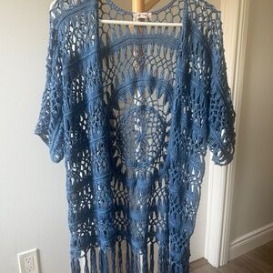 Garage | Size XS-S | Blue Crochet Tassel Cardigan – Beach Cover Up