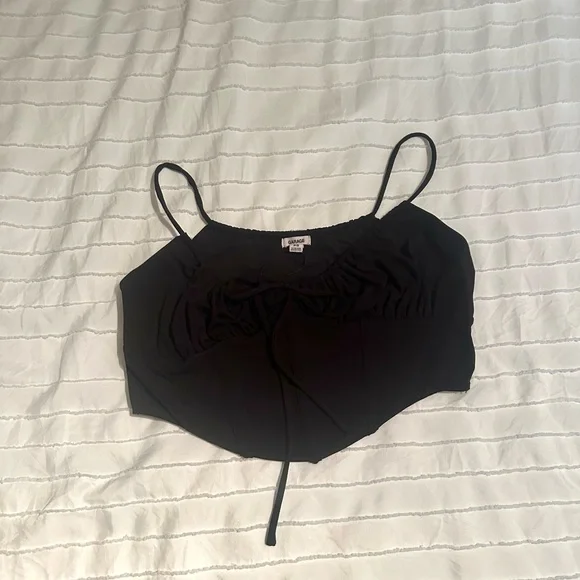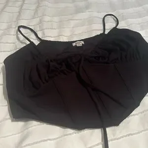 It’s a black corset style tank top. The straps are adjustable and the fabric itself has some stretch to it. Only worn a couple of times.