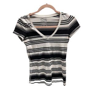 Garage T-shirt Small Womens Black and White Stripped T-Shirt with V-Neck
