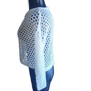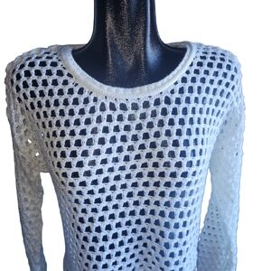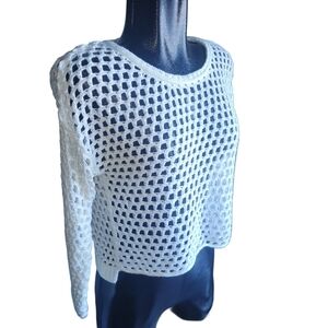 Garage White Open Knit Cropped Long Sleeve Top XS