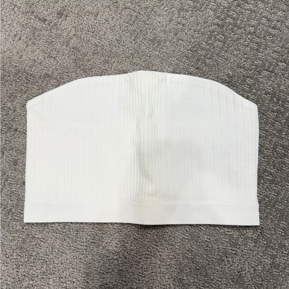 Stylish white ribbed tube top. Perfect for layering or wearing alone.