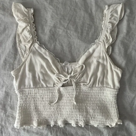 Garage White Ruffled Tank Top