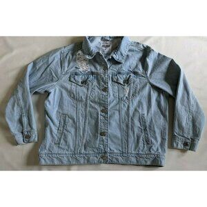 Garage Women Denim Jacket Light Distressed Boyfriend Fit Cotton Oversized Size L