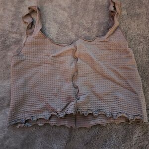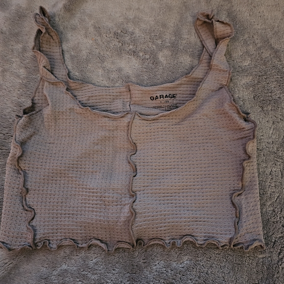 Elevate your style with this chic gray ruffle top from Garage. Perfect for any occasion, this top combines comfort and fashion effortlessly.