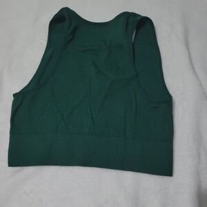 Dark green fitted ribbed womens crop top. V neck with no sleeves. Used once. Size small from Garage.