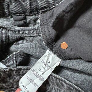 Women's size 9/29 black distressed straight-leg baggy jeans from Garage. Denim is sturdy with frays on the bottoms of the legs.